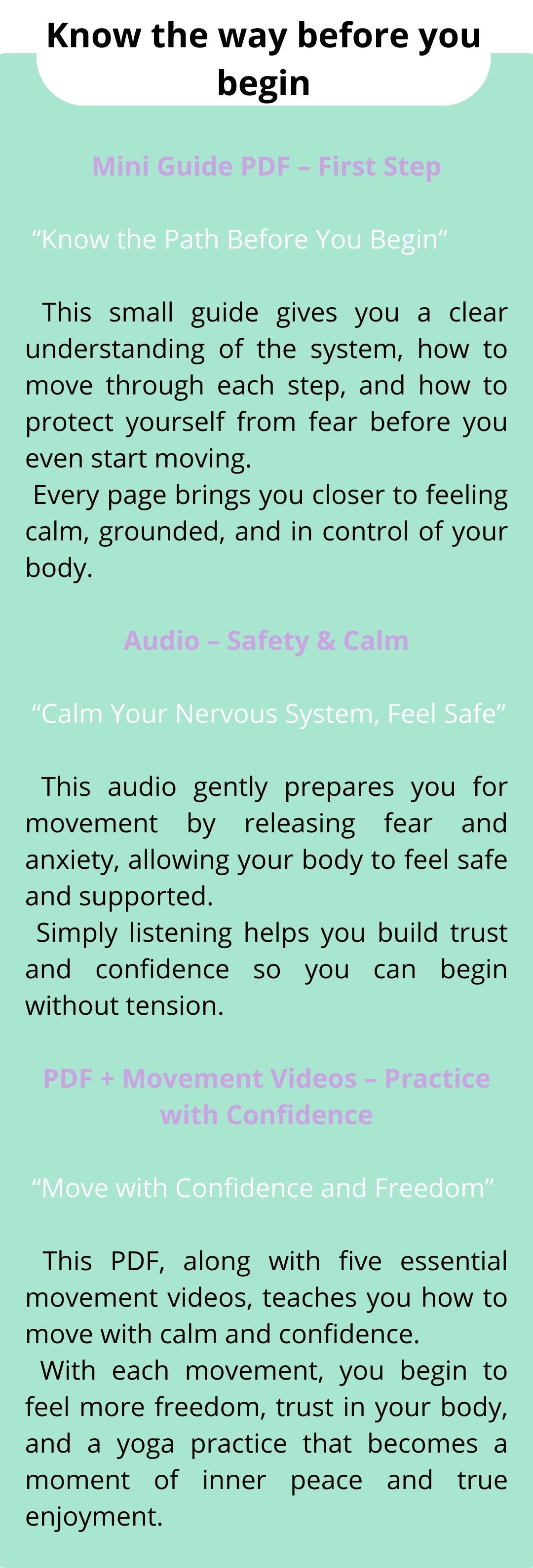 Then I discovered a gentle, safe way to reconnect with my body. Simple movements, calm guidance, no pressure.